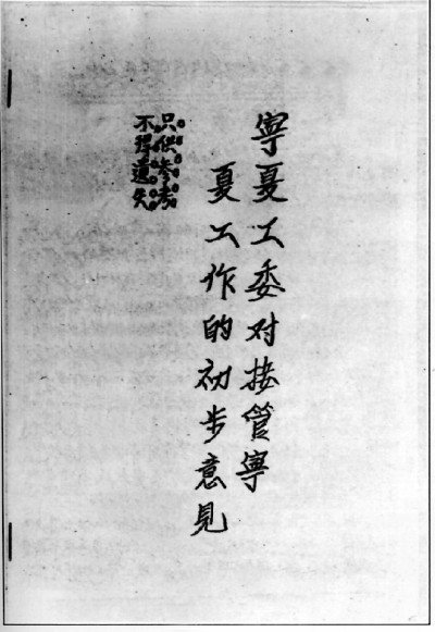 1945年9月,党在马鸿逵统治区的工作,是由中共中央西北局领导,具体工作由中共三边地委及其领导下的中共河东工作组负责。根据中共中央西北局指示,中共三边地委于1946年3月12日召开会议,专门讨论研究了宁夏工作。会议对以往宁夏党的工作进行了回顾与总结,形成了《三边地委对宁夏工作的决定》(初稿)。《决定》指出:“六年来(1940~1945年)宁夏工作只注意了统战工作,扩大了党的影响,而没有深入到农民、工人、广大群众中去建设党。也因缺乏深入而实际的工作经验,自然不能产生一个明确的方针,因而工作处在长期的摸索过程中。”根据当前的形势发展,“我党对宁夏工作的方针,应根据人民要求,抓紧时机努力争取与团结各阶层各民族中的民主分子,准备力量,为建设民主自由、民族自治幸福的新宁夏而斗争。”①《决定》还对建党工作、群众工作、回民工作、对外宣传工作等作了具体指示,要求各据点干部对《决定》进行深入探讨,贯彻执行。这次会议是抗战胜利后,中共三边地委专门研究宁夏工作的一次重要会议,史称“三月会议”。